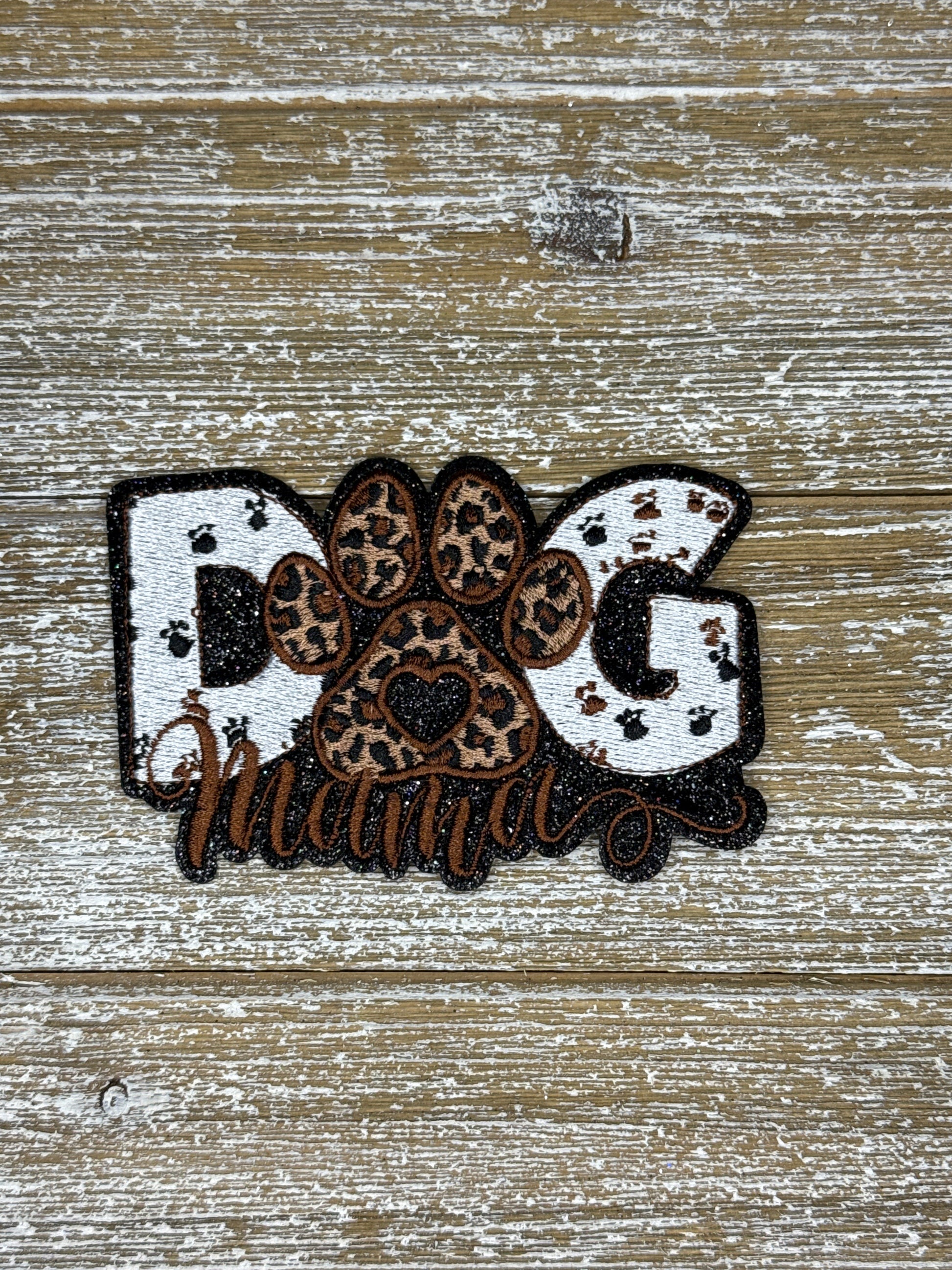 Black Glitter Dog Mama Iron On Patch