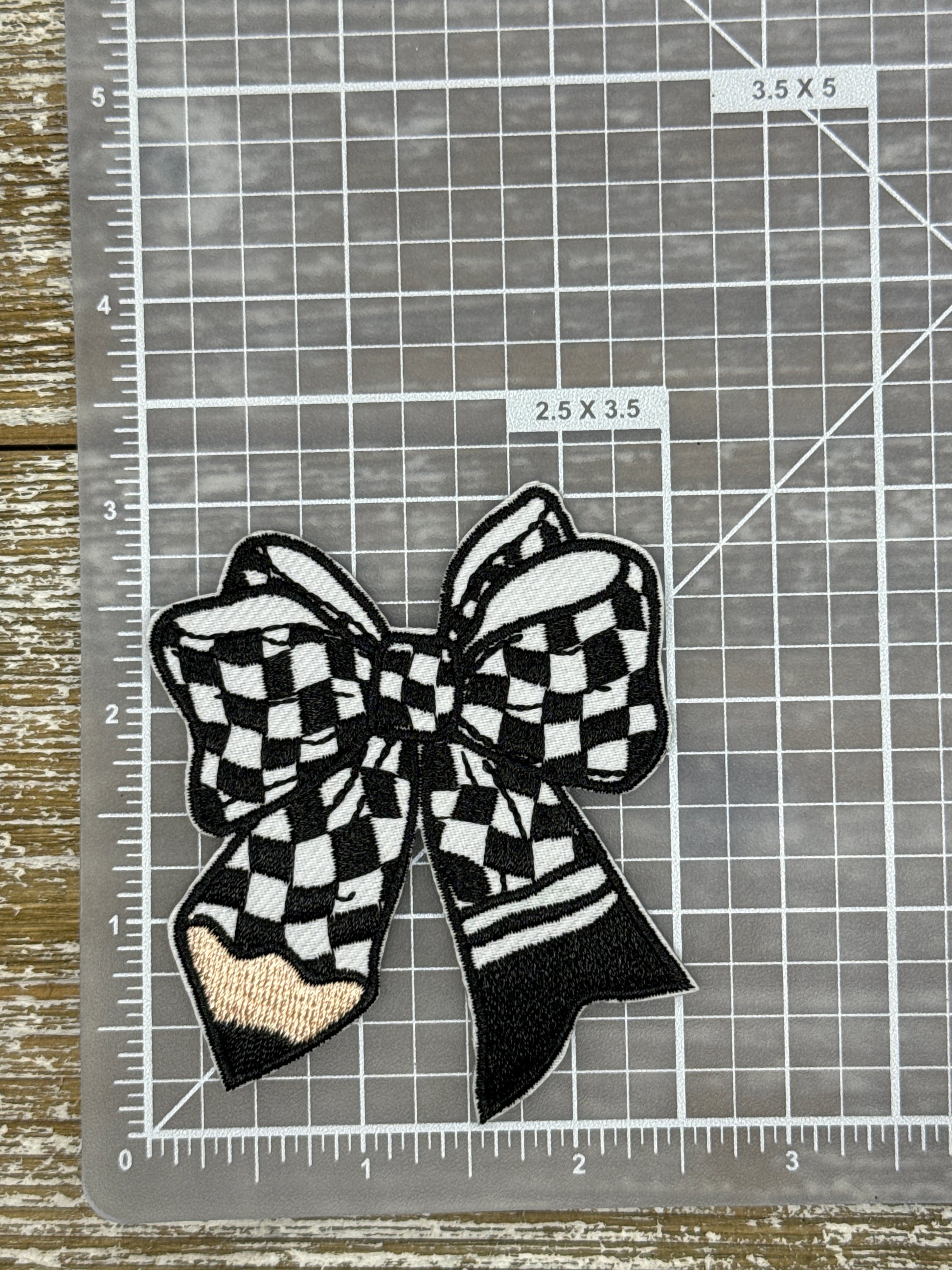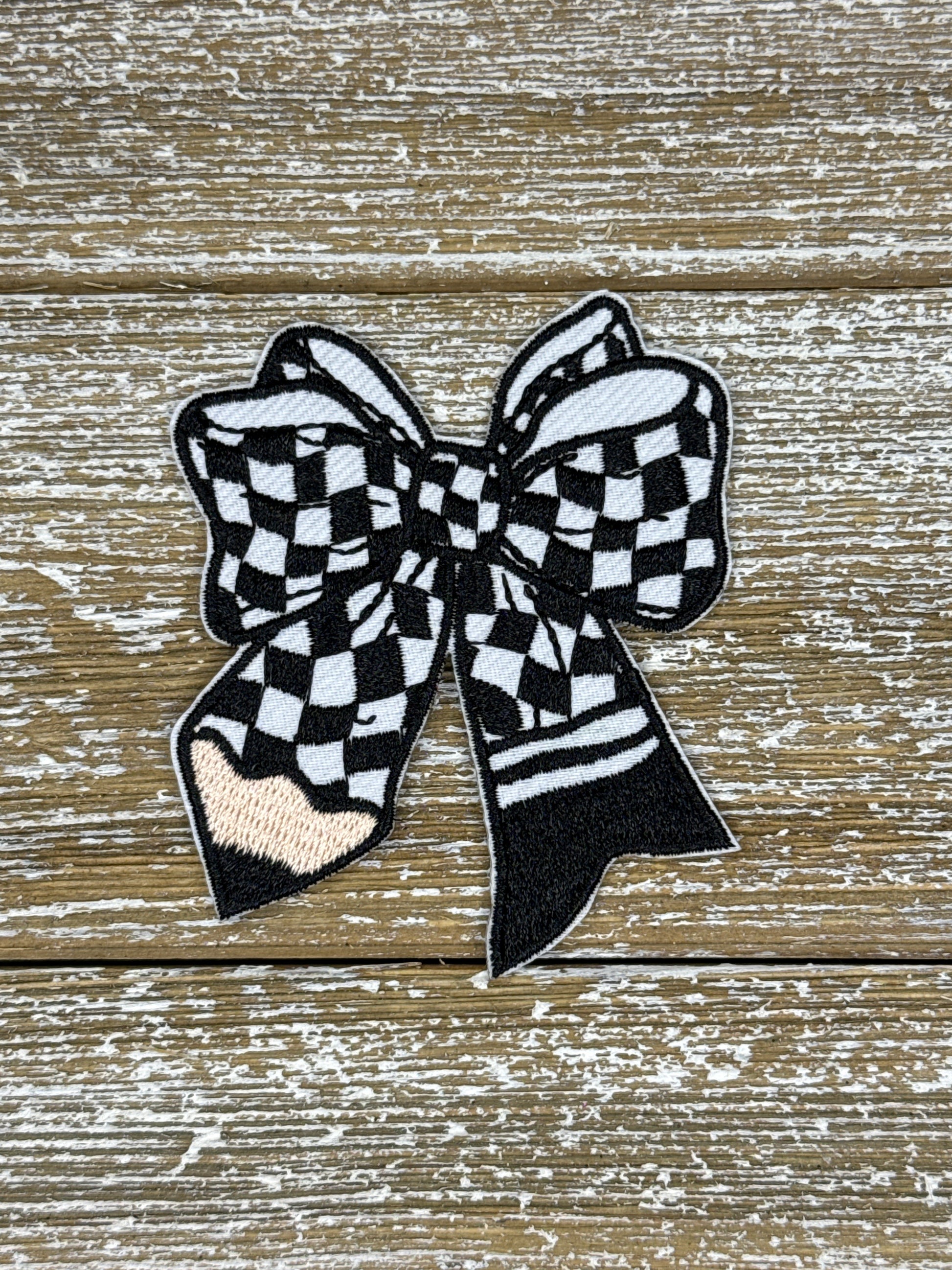 Checkered Pencil Bow Iron On Patch