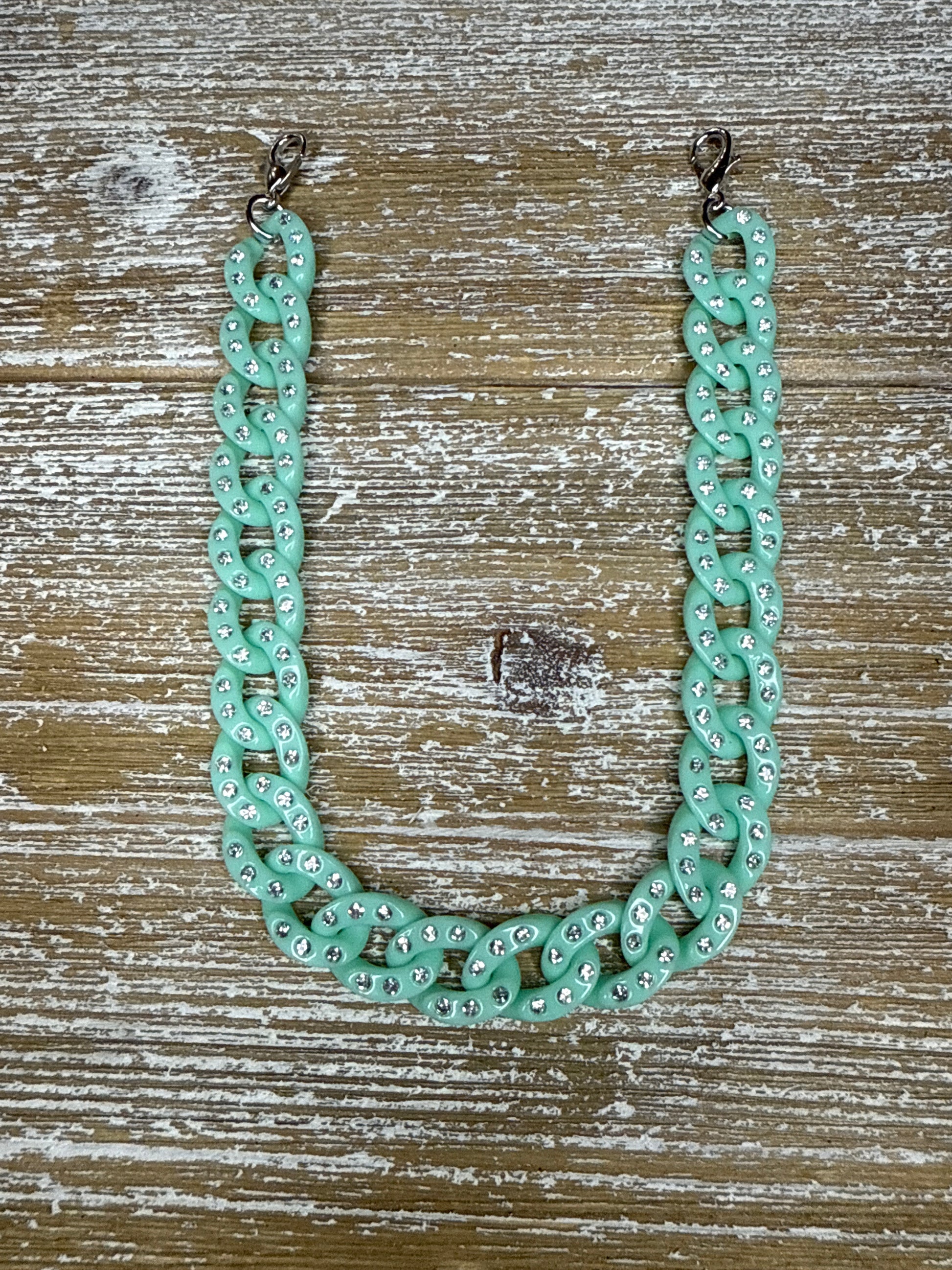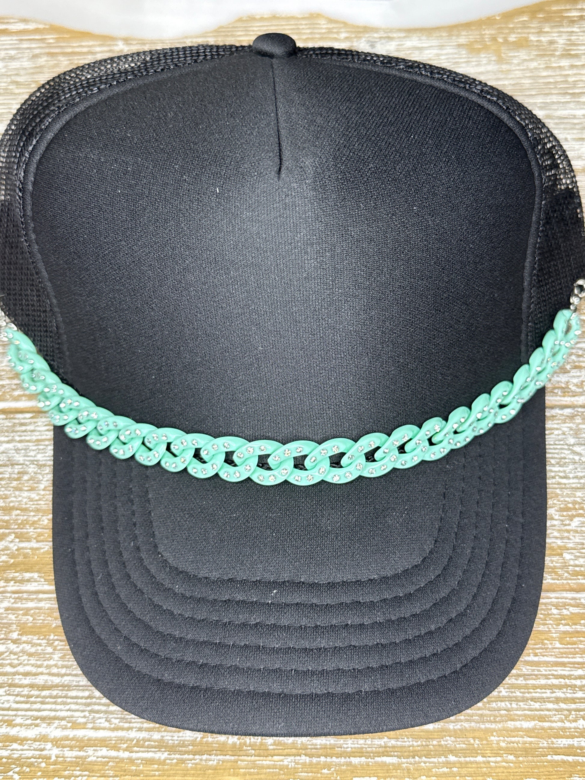 Teal Rhinestone Link Hat Chain