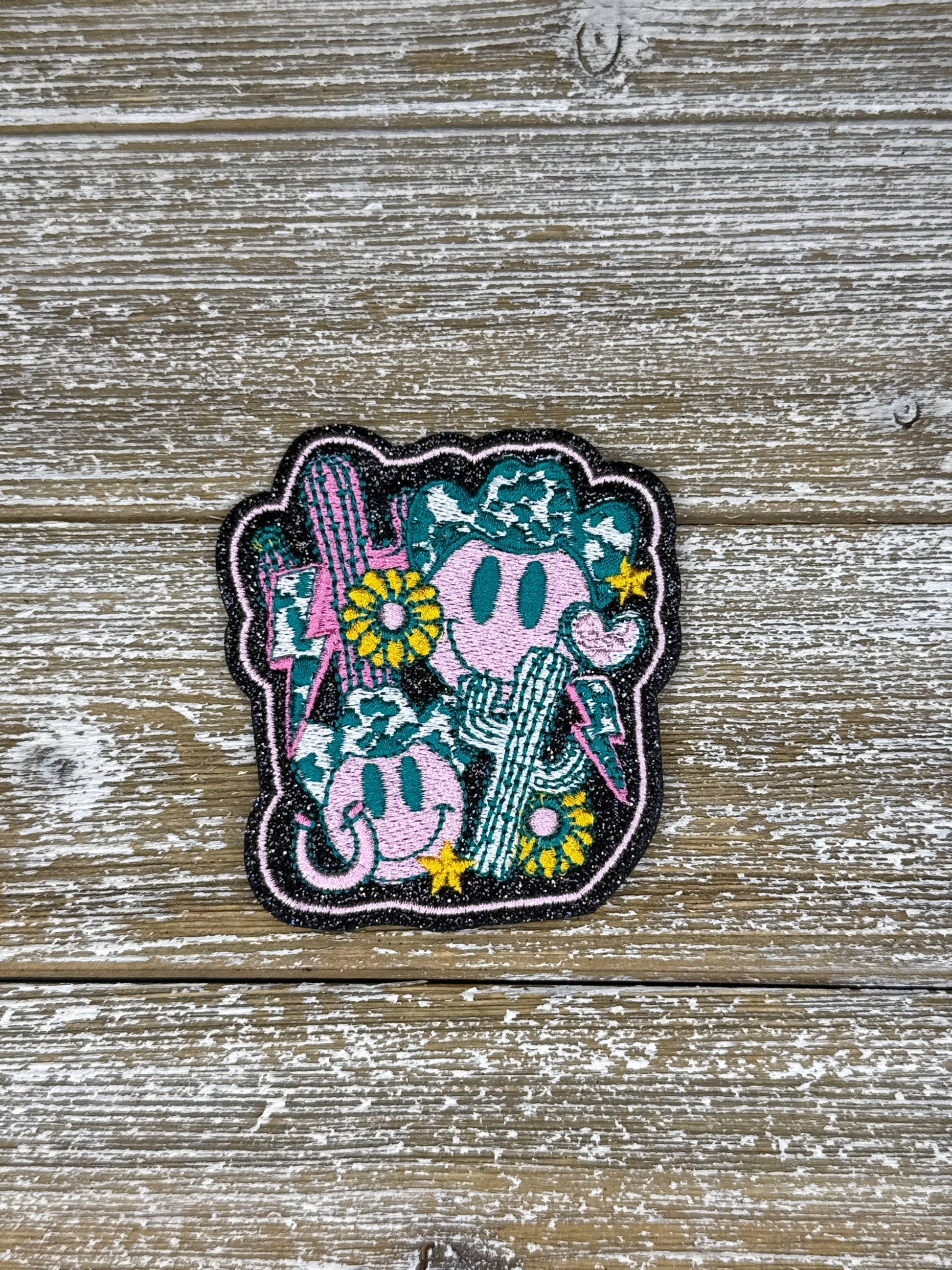 Glitter Smiley Face Cowboy Iron On Patch
