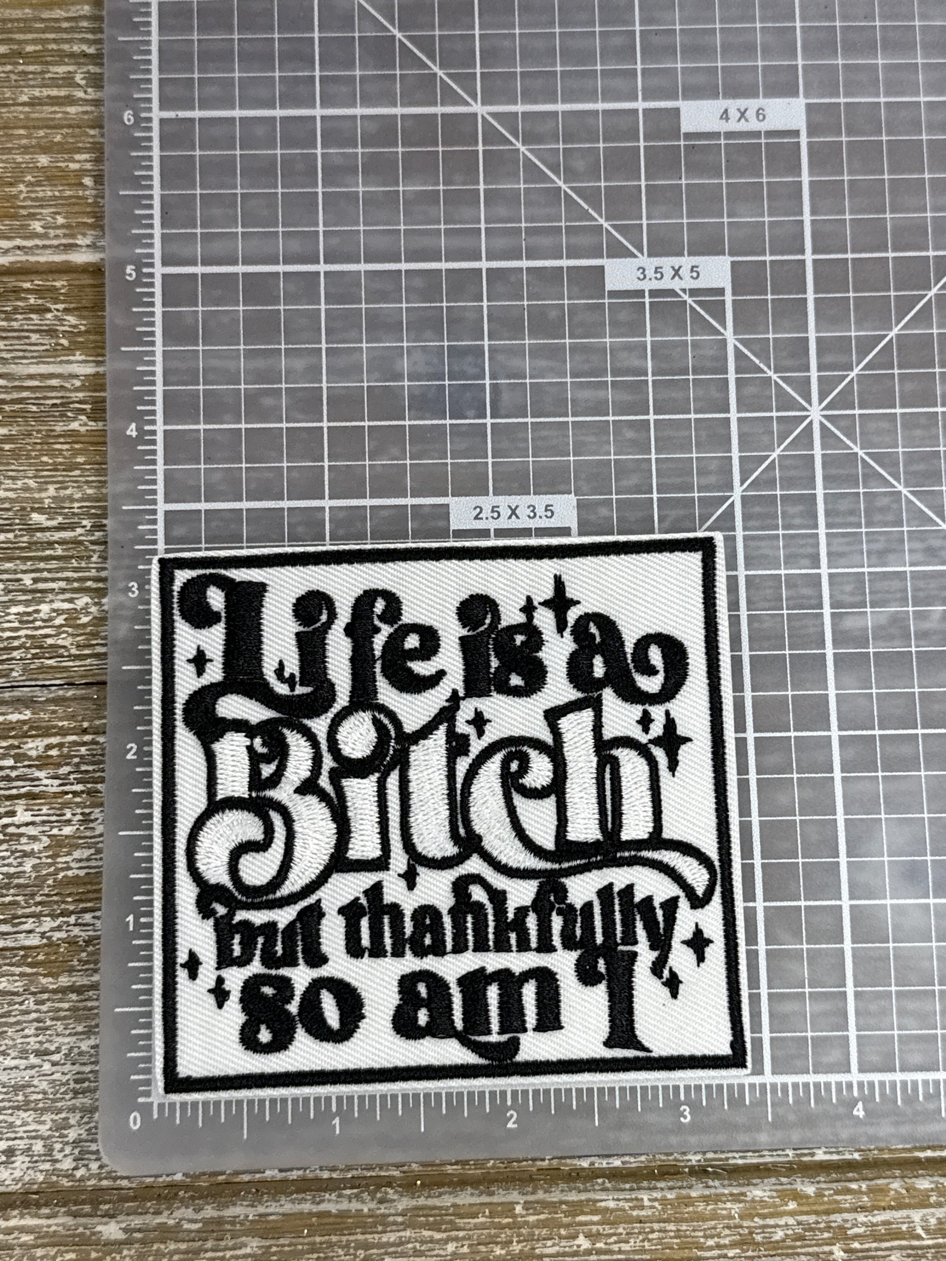 Life Is A Bitch But Thankfully So Am I Iron On Patch