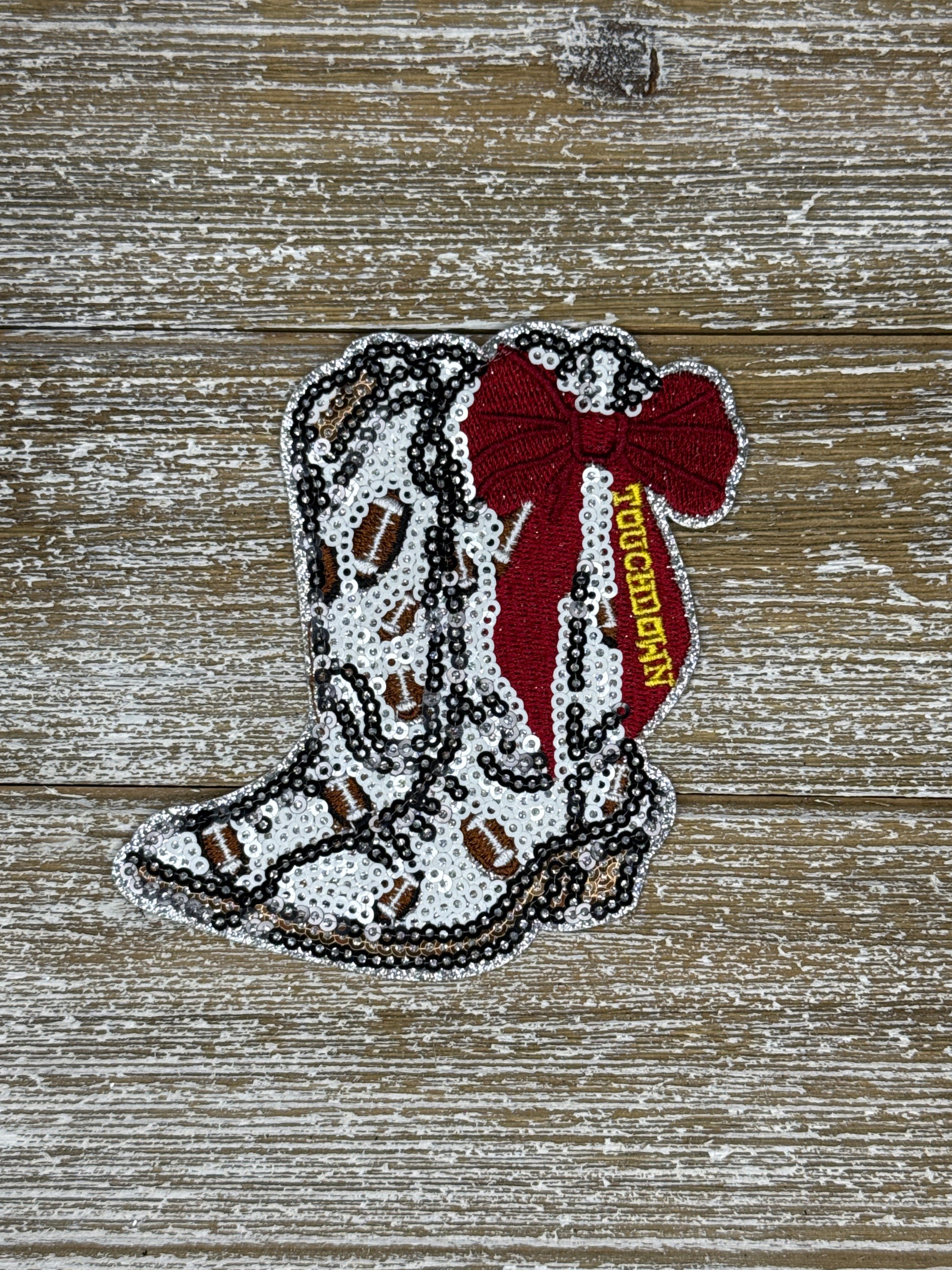 Sequin Touchdown Bow Cowgirl/boy Boot Iron On Patch